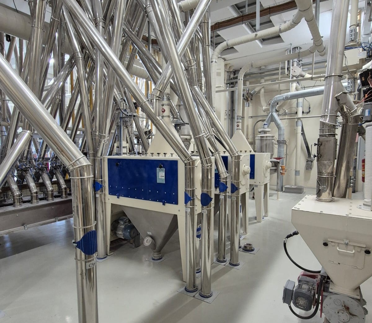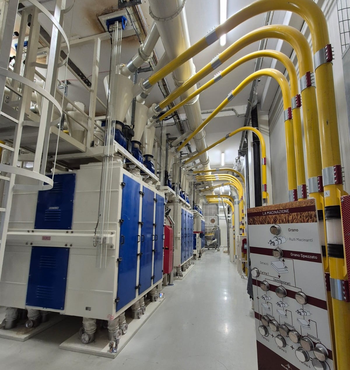 The new plant has been designed to integrate into the existing production architecture. It receives wheat from the already operational and upgraded cleaning section, guiding it through the new milling line up to the storage silos. All with a clear objective: to enable the flexible production of different types of flour using a milling diagram distinct from that of the existing section, organizing production into specific batches to be stored in silos. The plant produces high-quality flours for a wide range of bakery applications, ensuring maximum food safety and full traceability.