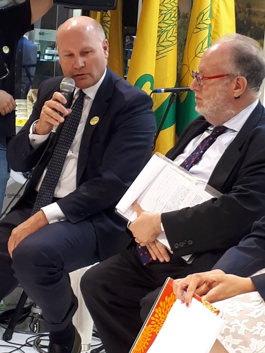 The journalist and TV presenter Edoardo Raspelli, during an interview at the Coldiretti stand, asked Federico Vecchioni how the idea of the brand was born: “We wanted to satisfy the consumer according to his needs, that is productions that respect the times of nature during the year, at that time of cultivation and of that typical Italian productive area. So, the Stagioni d’Italia brand includes the seasonality, quality, attention to production transparency that the consumer requires, but also includes the natural and biological production cycle that is inherent in the production sites of Bonifiche Ferraresi, of the different regional realities”. With this line of products, Bonifiche Ferraresi provides the consumer a product with a 100% Italian raw material of absolute and certified quality. A quality that is expressed also through the packaging of the products, distinguished by the colors that refer to the fields with the furrows of plowing, and by its brand that is characterized by the presence of a Leopoldina (see the previous post https://www.ai-lati.com/more-value-to-valdichiana-territory/?lang=en ). Pasta is obtained starting from the wheat grown on the land of Bonifiche Ferraresi, which is transformed with the traditional bronze drawing and dried in a long time to keep intact all the qualities. Moreover, in 10 of the 20 references, Bonifiche Ferraresi uses the “Senatore Cappelli”, a fine ancient wheat variety that, thanks to its long history, has never undergone alterations or manipulations. Likewise, Rice is a totally zero km, in fact it’s directly harvested from rice fields located near the the modern rice mill of Jolanda di Savoia (FE), the Group’s headquarters, where it’s processed. It’s a rice that starts from the Italian rice tradition and that is why the range consists of varieties such as Arborio, Carnaroli, Baldo, Vialone Nano and a Well-being Line (mix of 3 cereals – rice, spelled, barley- and wholewheat).