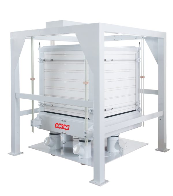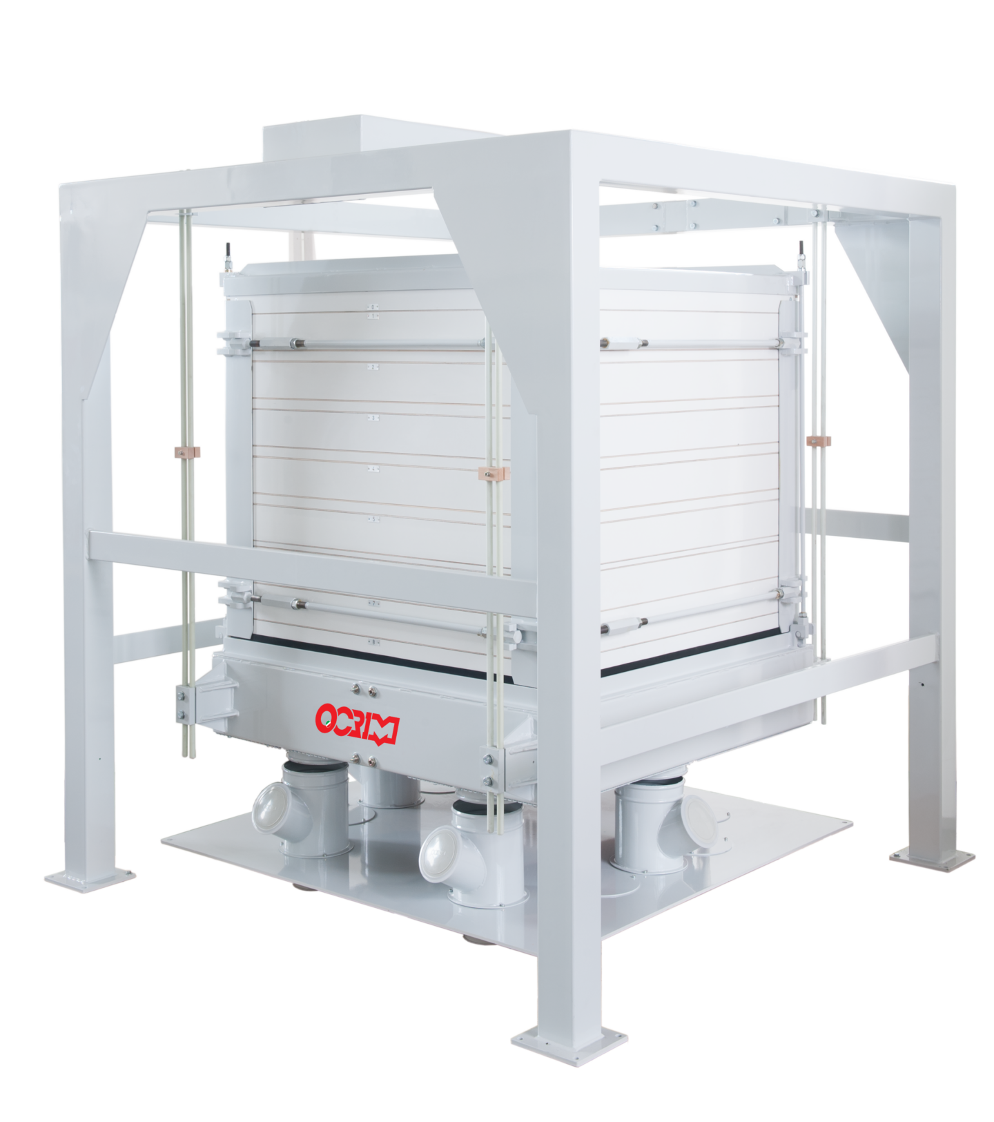 Due to reduced dimensions, high output and rapid change of technological schemes, this machine is recommended for sifting, calibrating and checking milling products. It can be supplied in 2 configurations: leaning or suspended. There is also a version with sieves coated internally and externally in stainless steel.