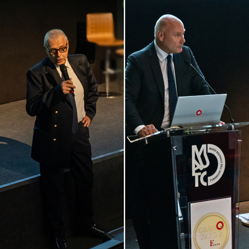 Al termine si è svolta la cerimonia dell’annullo filatelico, realizzata da Poste Italiane e presentata da Marta Latini[18], con la timbratura eseguita da Alberto Antolini e Marcella Domenica Messina[19], un momento simbolico che ha celebrato la storia e la continuità dell’azienda. Nel pomeriggio gli ospiti hanno visitato le esposizioni del MAUTO – Museo Nazionale dell’Automobile, immergendosi tra icone dell’ingegneria automobilistica italiana e osservando come creatività, ingegno e innovazione tecnologica siano tratti comuni tra industria automobilistica e molitoria.