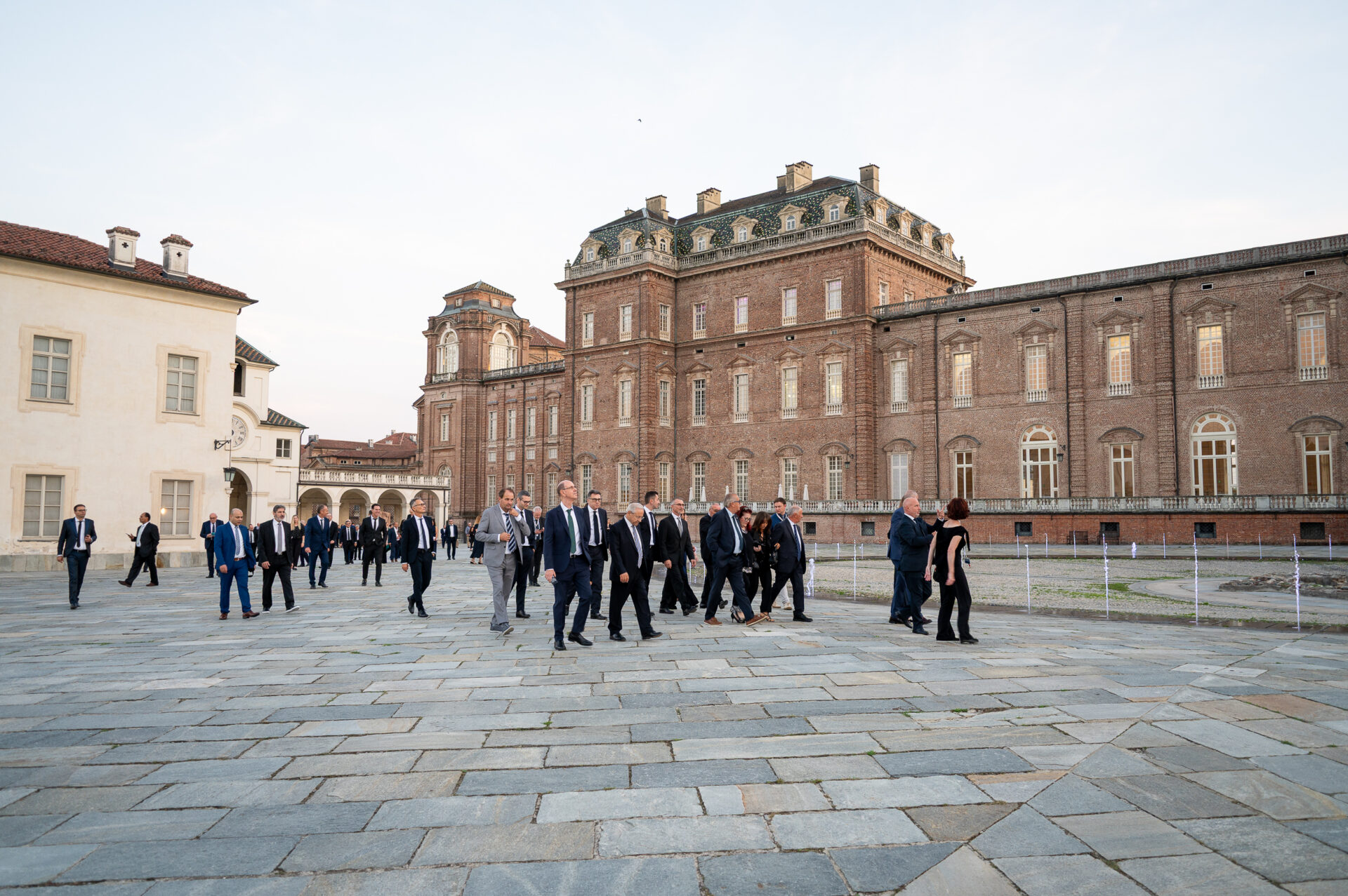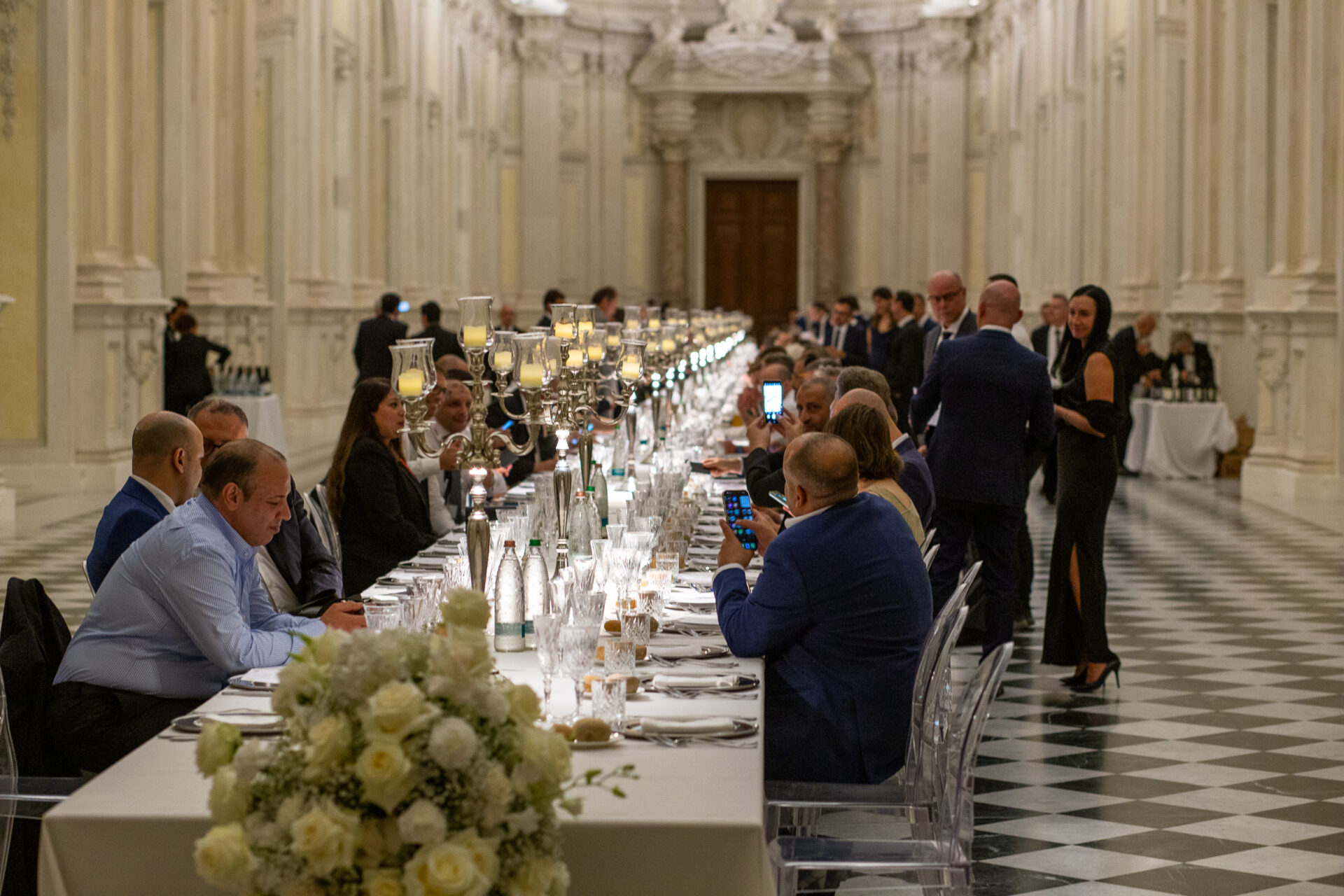 Il venerdì si è concluso con una serata memorabile nella Galleria Diana della Reggia di Venaria, con oltre 220 ospiti seduti a una tavolata imperiale lunga 75 metri. L’eleganza degli spazi e la musica di un quartetto d’archi hanno creato un’atmosfera unica, arricchita dallo spettacolo della Fontana del Cervo, che ha offerto un finale indimenticabile per gli ottant’anni di Ocrim.